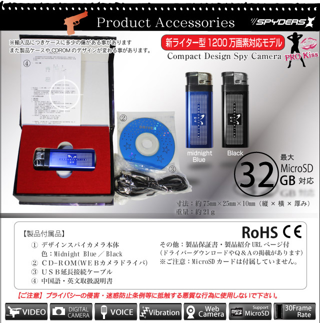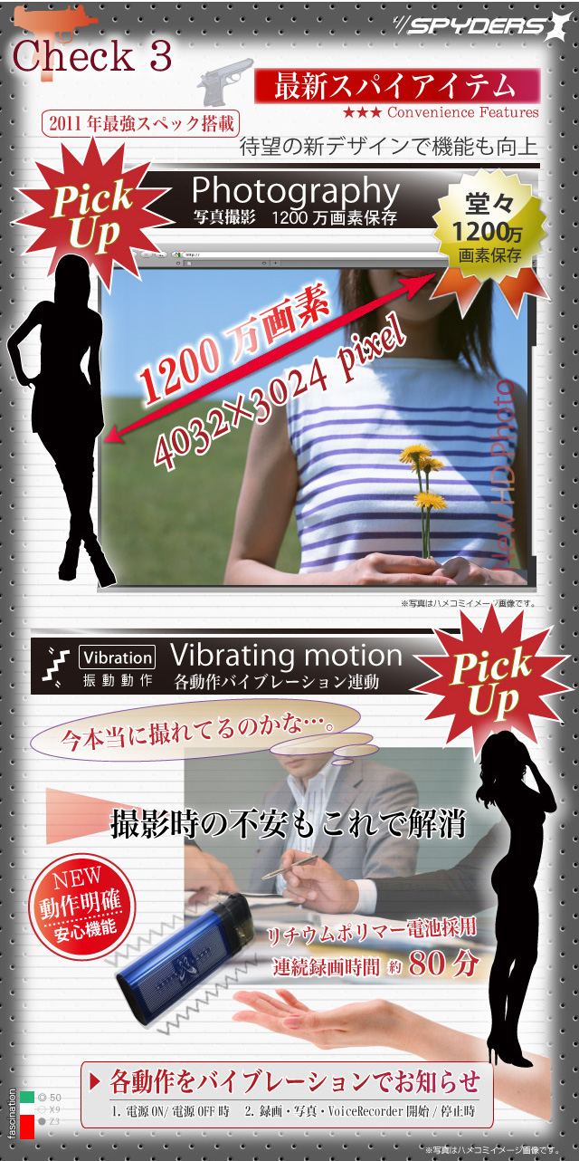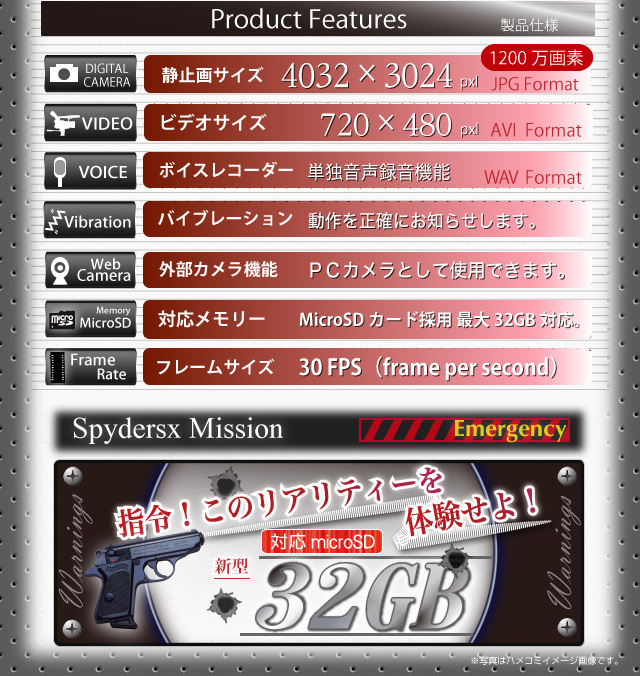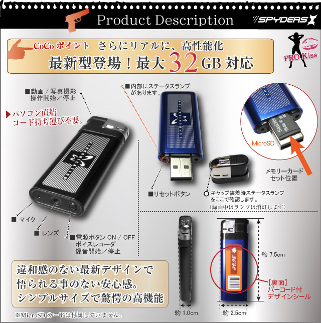 ⇒人気のスパイダーズXより、最新ライター型,1200万画素スパイカメラ初登場!!