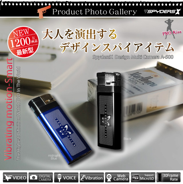 【小型カメラ】最新ライター型スパイカメラ(スパイダーズX-A500)1200万画素(色:ブラック)
