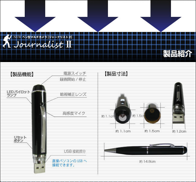 【小型カメラ】ペン型マルチカメラ(匠ブランド)『JournalistII』(ジャーナリスト2)通販