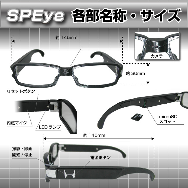 【小型カメラ】メガネ型マルチカメ ¥16,900(税込) ◎高性能メガネ型カメラのハイスペック版登場!! ・個人の生活・プライバシーを守るために開発された究極のハイテク防犯グッズ。 ・直径1ミリの超小型レンズ採用。外観共に完璧なプロ仕様。 ・レンズは本体中央に模様でカムフラージュされた小さな穴に。 ・このサイズで撮影… |